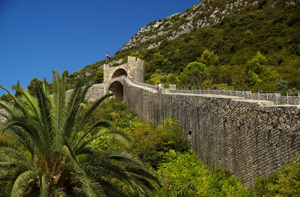 Ston, ein malerisches Städtchen in der Nähe von Dubrovnik, ist bekannt für seine beeindruckende Stadtmauer – die zweitgrößte befestigte Maueranlage der Welt - und seine Salzgärten.